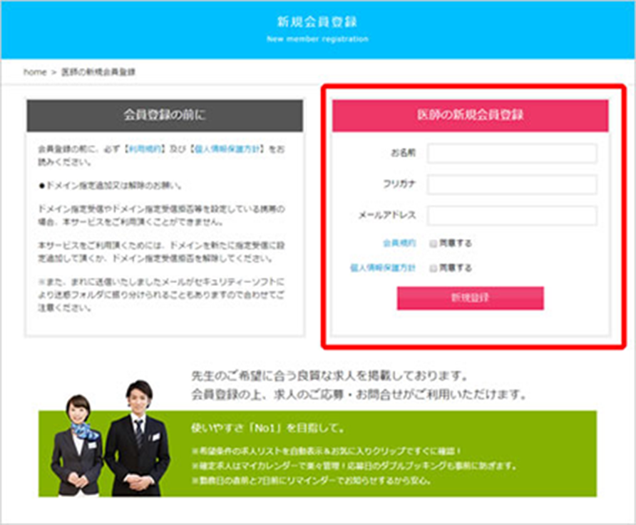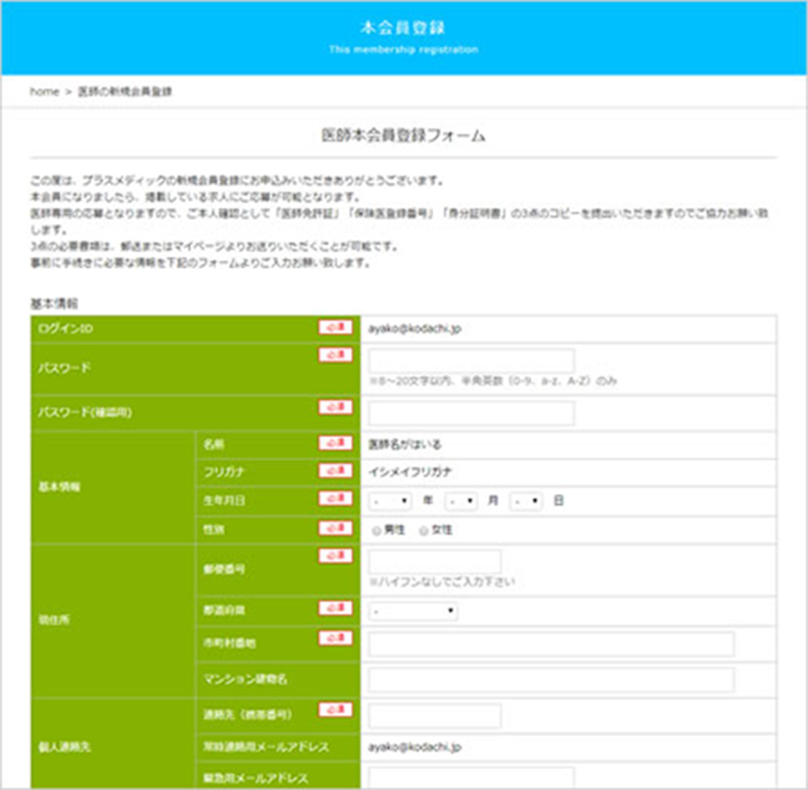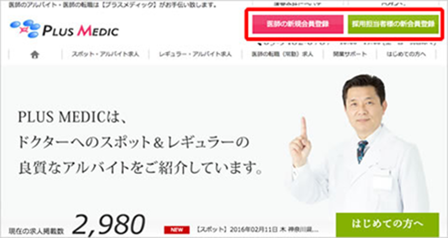 プラスメディックの求人サービスをご利用したい医師、医療機関の担当者は、まず最初に新規会員登録を行いID・パスワードを入手してください。
