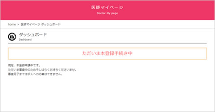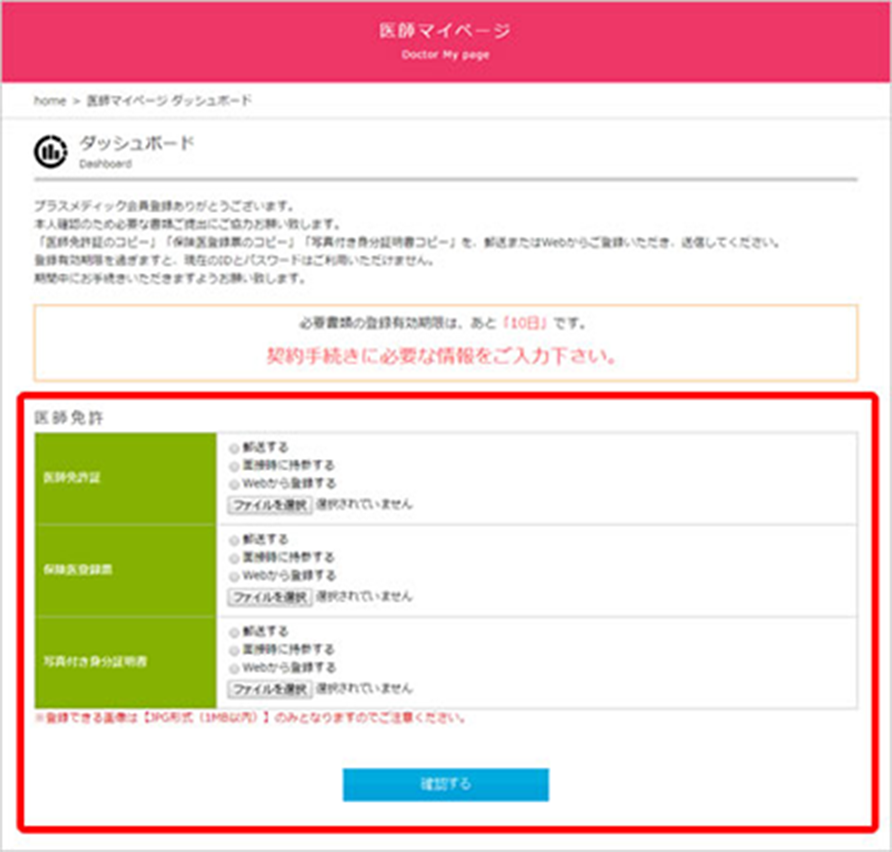 必要情報をご登録後、プラスメディックによる本登録手続きを行ないます。進捗はマイページのダッシュボードをご確認ください。